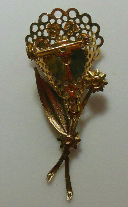 Vintage Gold-tone Blue Rhinestone Prong-set Filigree Floral Brooch