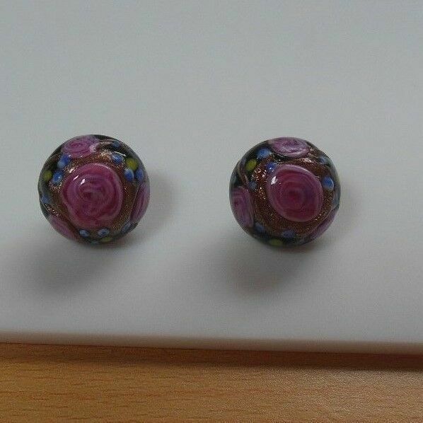 Vintage Glass Enamel Victorian Floral Pink Rose Pierced Earrings