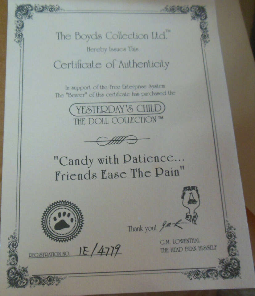 Boyds Yesterday's Child Doll 12.5" Candy W/Patience Friends Ease The Pain #4831