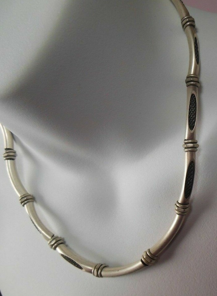 Silver-Tone Bead Choker Necklace W/ Screen/Wire Mesh Inside Each Bead