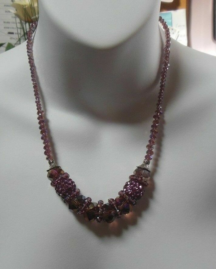 statement with this lovely purple/pink crystal glass necklace and earring set.