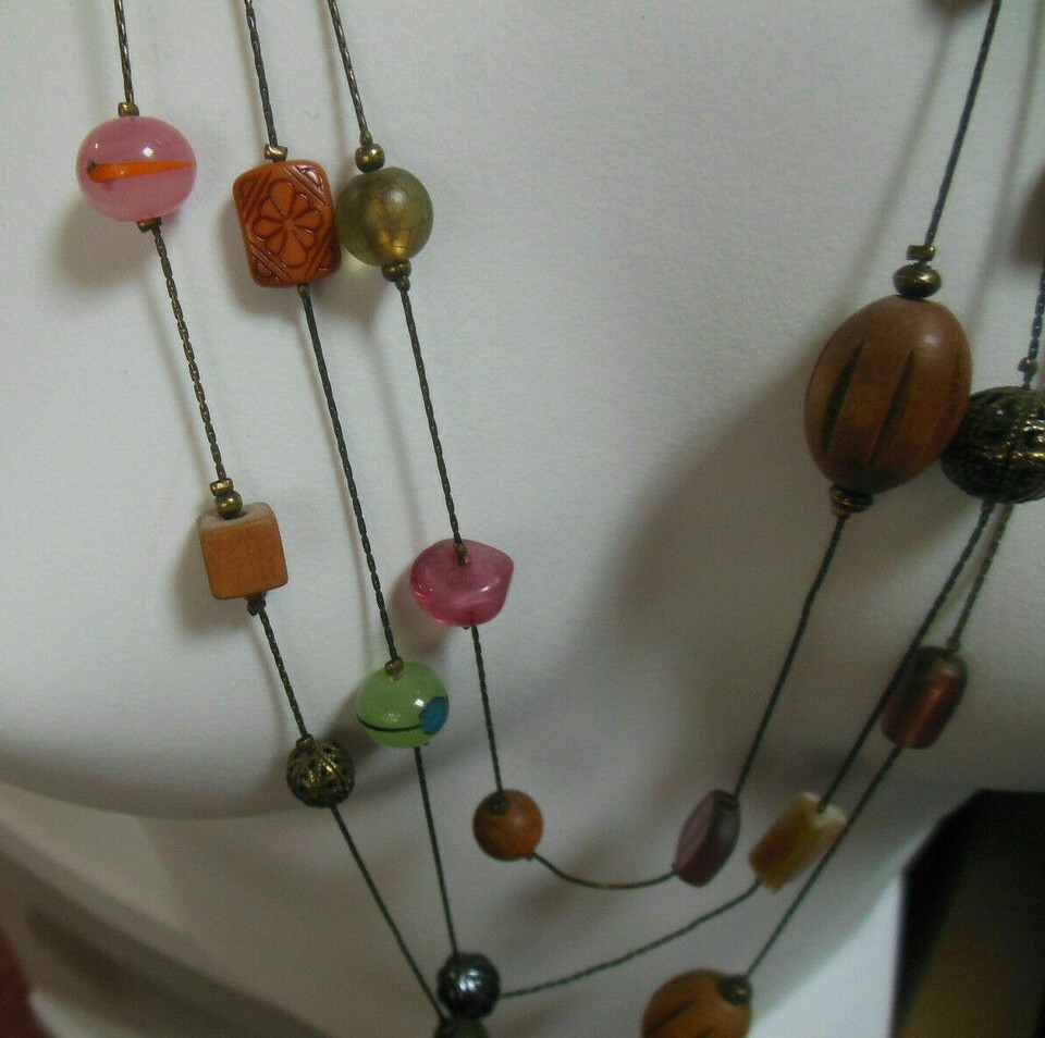 Lia Sophia Triple Strand Multi-color Glass/Bead/Wood Chain Necklace