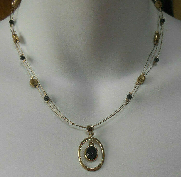 Lia Sophia Gold-tone Triple Strand Beaded Wired Pendant Necklace