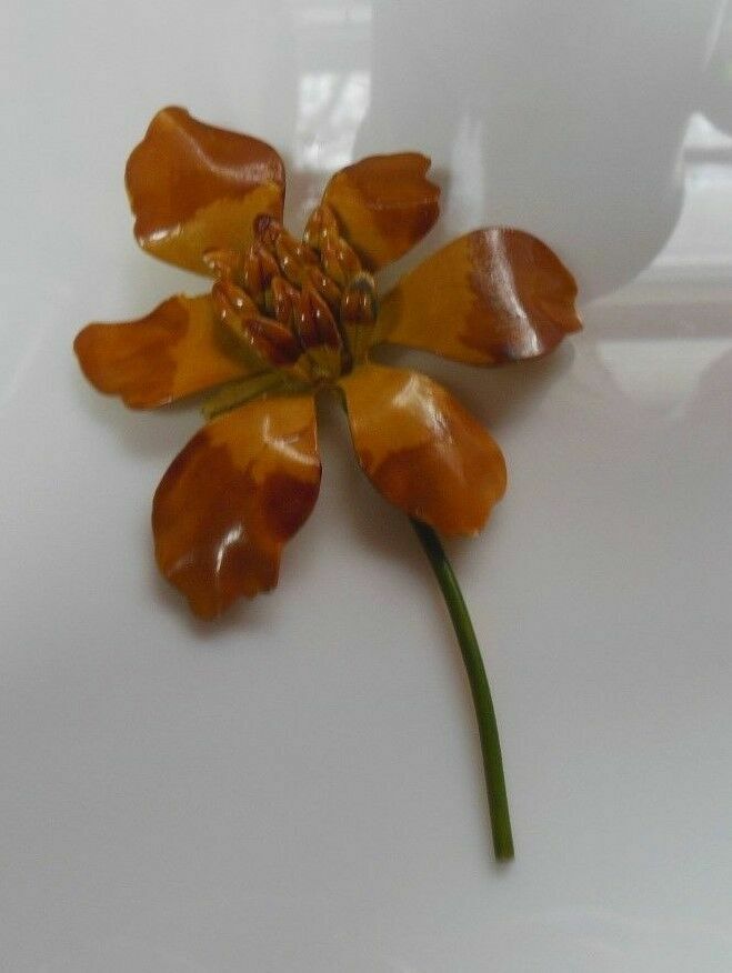 Large Vintage Enamel Metal Brown/Yellow Mustard Color Flower Brooch/Pin