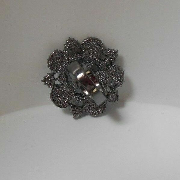 Large Colorful Sparkly Rhinestone Gunmetal Floral Ring Size 8