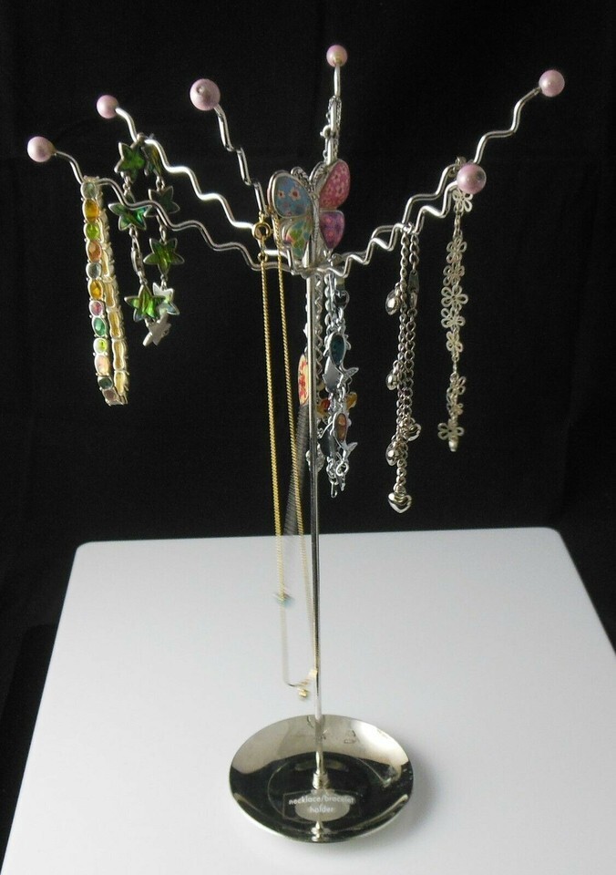 Girls Necklace Bracelet Holder W/Bottom Ring Tray Butterfly Metal Jewelry