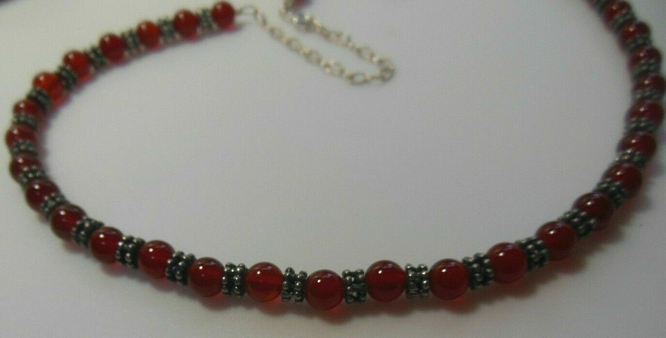 925 Silver Cherry Amber Color Glass Bead Necklace W/Silver Spacers