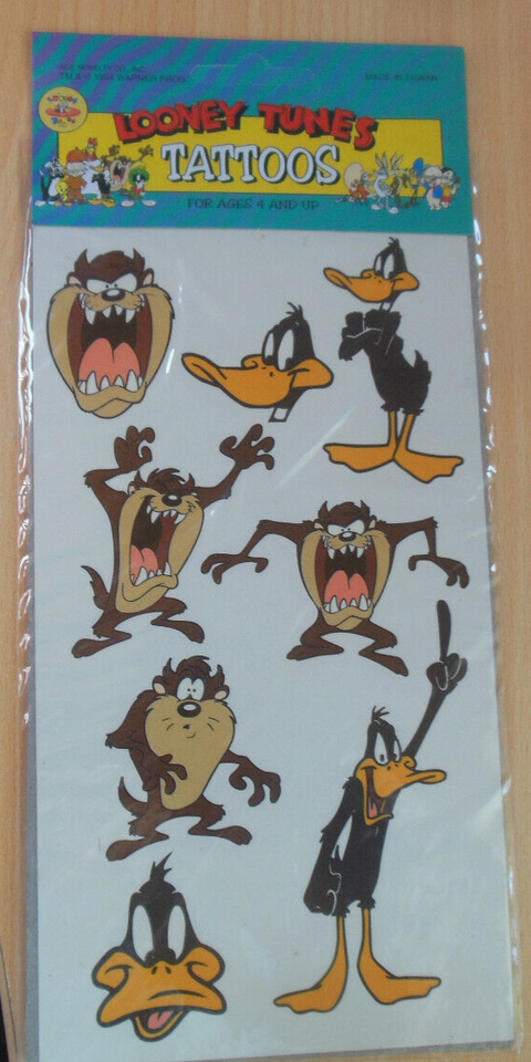 Vintage Looney Tunes Tattoos 1994 Taz, Daffy Duck Easily Removable
