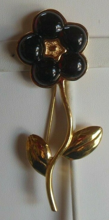 Vintage Gold-tone Cherry Red Glass CABOCHON Flower Brooch