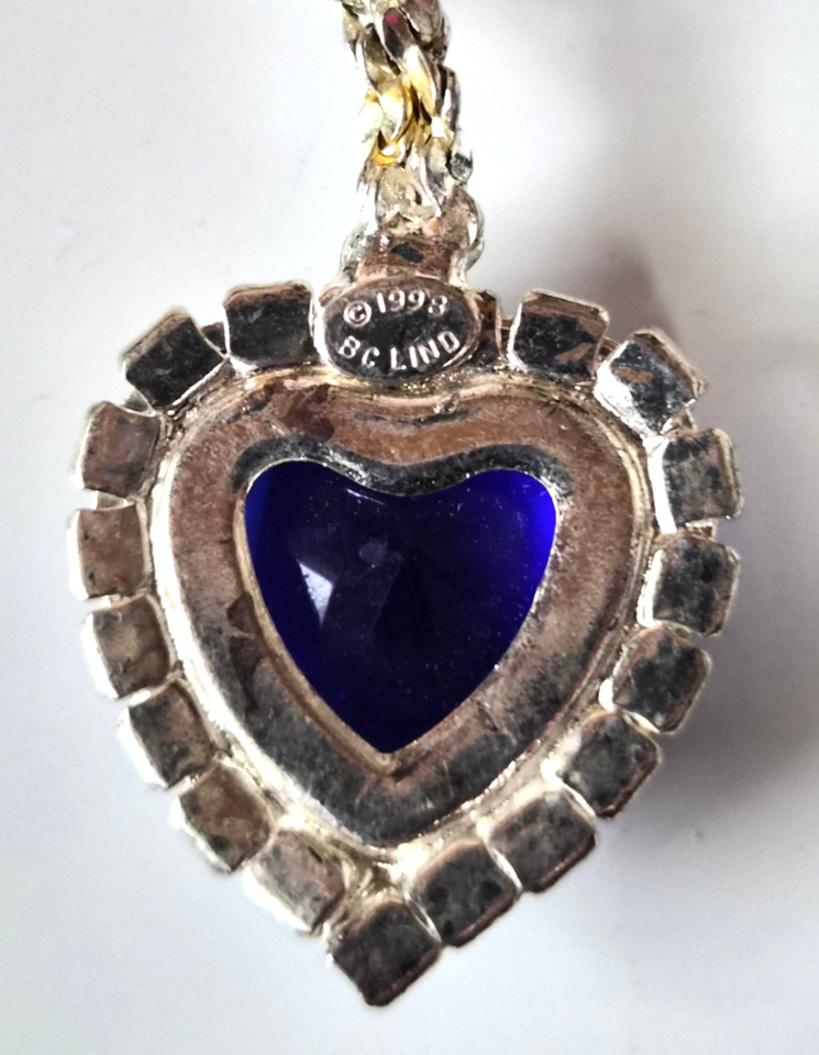 BC Lind 1998 Heart of the Ocean Blue & Clear Rhinestone Pendant Necklace 17.5"