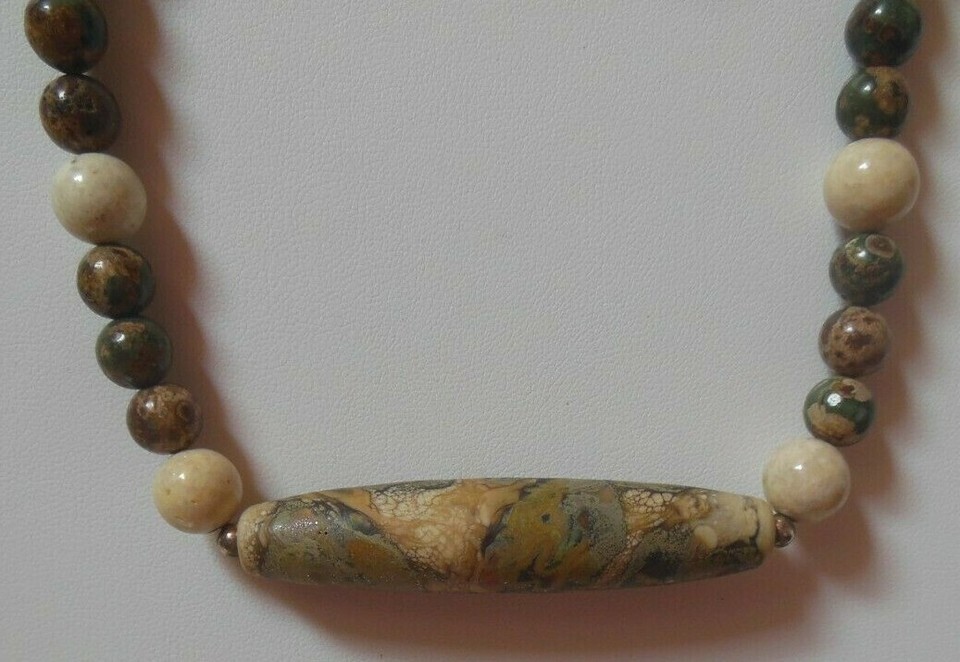 Vintage Brown/Green/Cream Stone Pendant 925 and similar items