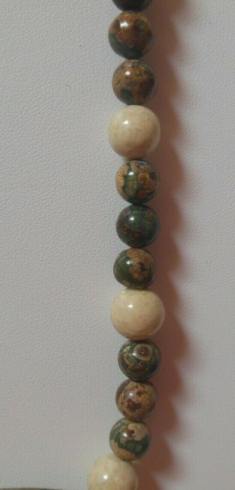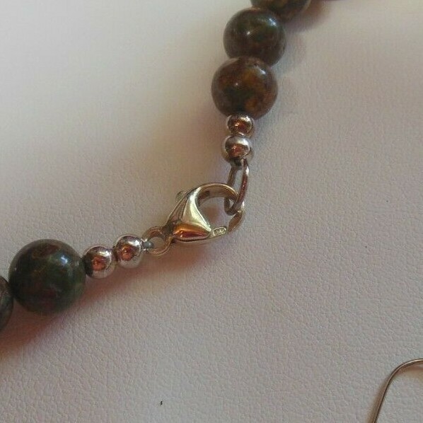 Vintage Brown/Green/Cream Stone Pendant 925 Clasp Necklace Hook Earrings
