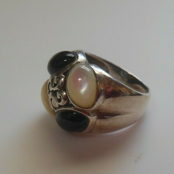 Vintage MOP & Black Cabochon Dome Ring Size and 50 similar items