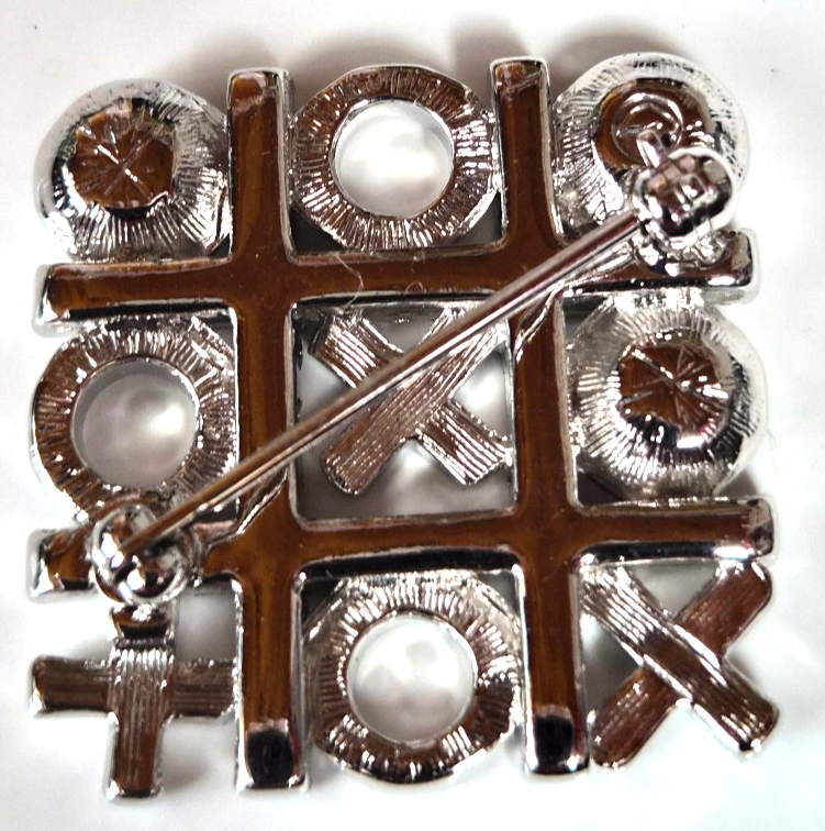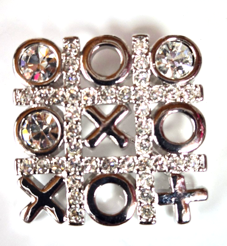 Vintage SWAROVSKI Signed Swan Logo Crystal Tic Tac Toe Brooch 1" Diameter