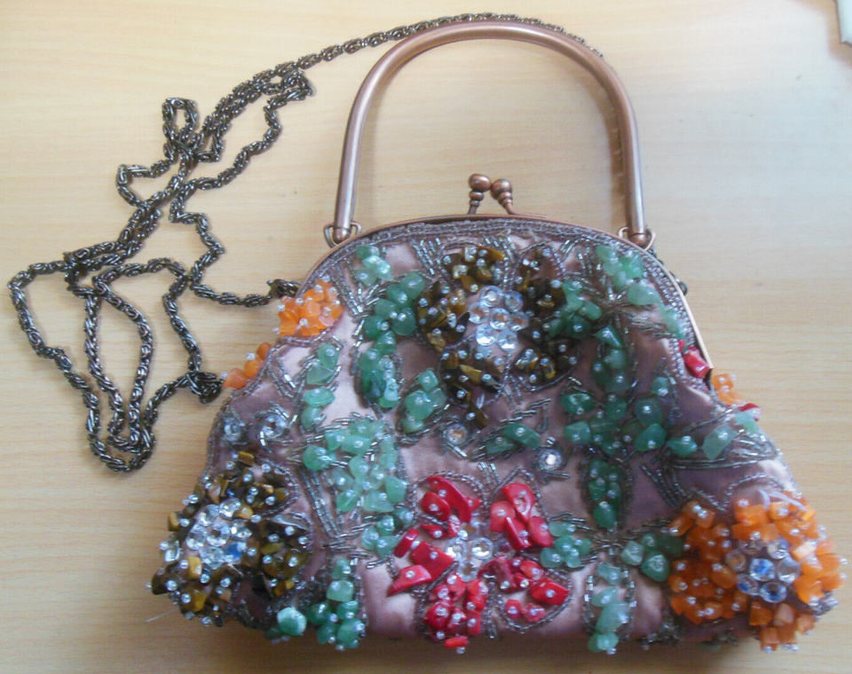 Vintage Carlo Fellini Multi-color Stone Chip Evening Purse