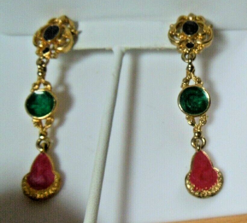 Vintage Enamel Gold tone Dangle Link Pierced and similar items