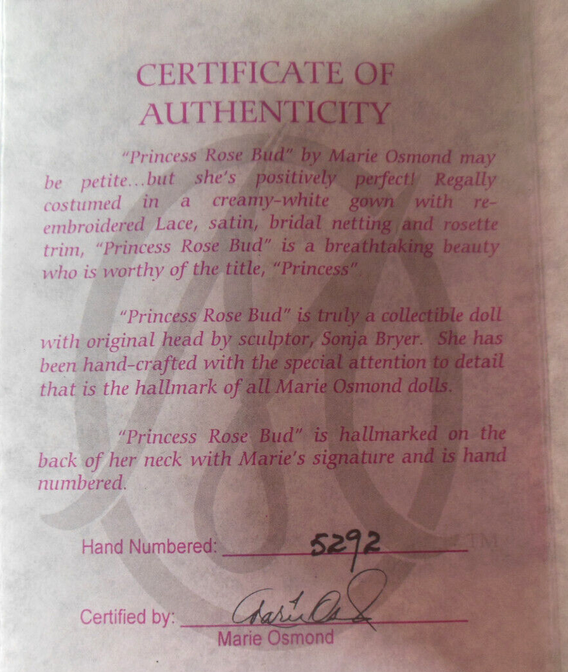 Marie Osmond Doll ?Princess Rose Bud" Tiny Tot