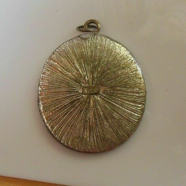 KC Signed Oval Green Glass/Silver Tone Pendant