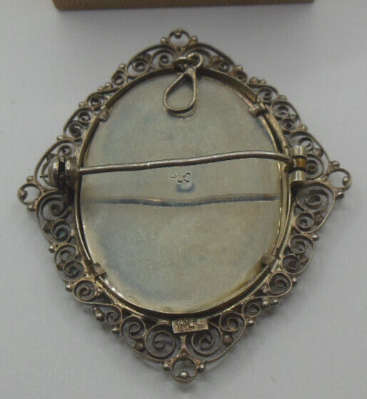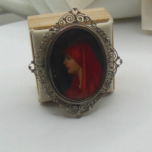 Vintage Victorian Hand Painted St. Fabiola Henner Brooch/Pendant 800 Silver