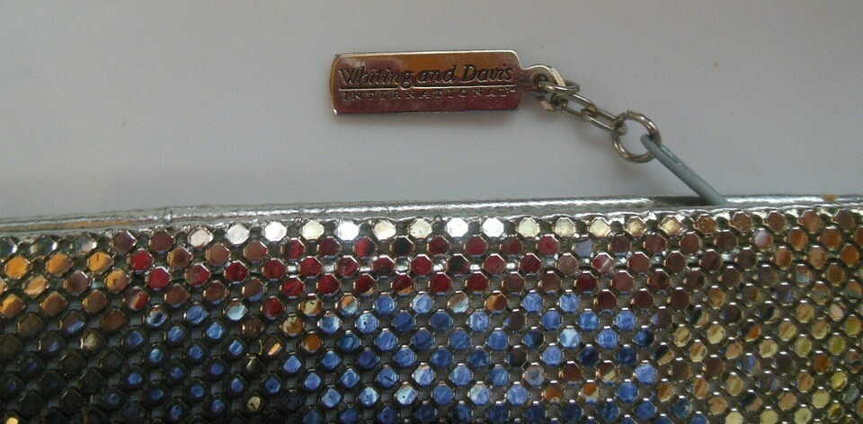 Vintage WHITING DAVIS International Silver Mesh Clutch/Cosmetic Bag