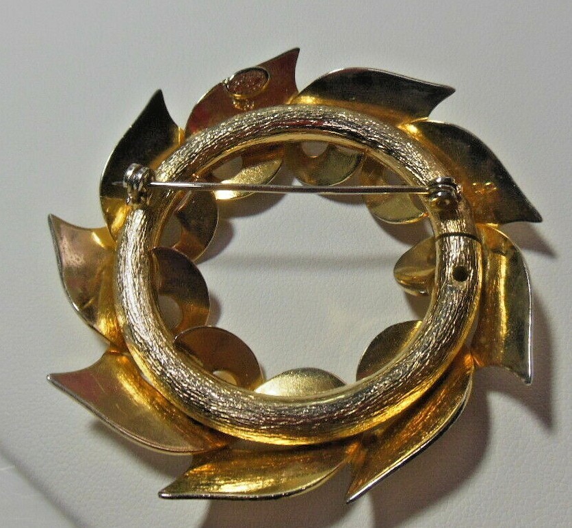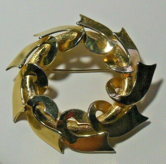 Vintage Kramer of New York Gold-tone Round Swirl Wreath Brooch 2.1/4"