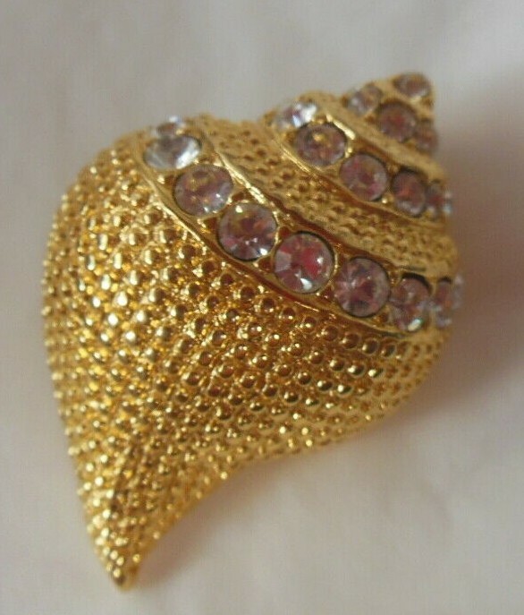 Vintage KJL Kenneth J Lane Gold Plated Sea Shell Rhinestone Brooch / Pendant