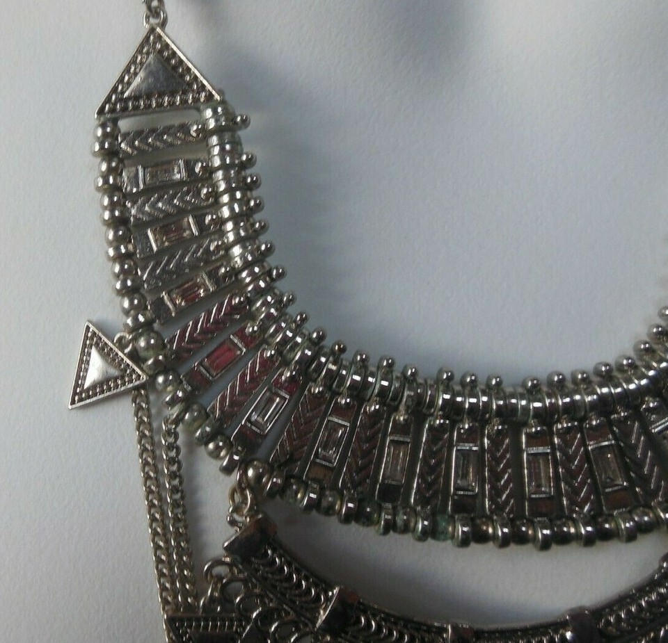 Vintage Egyptian Style Silver-tone & Rhinestone, Baguettes Statement Necklace