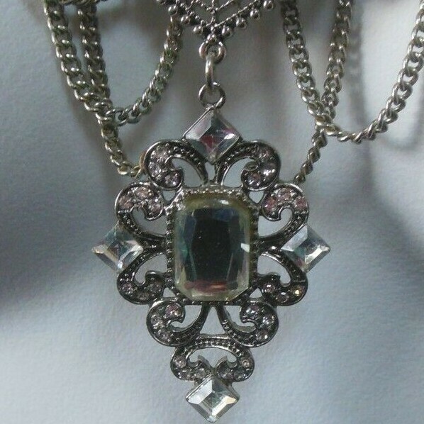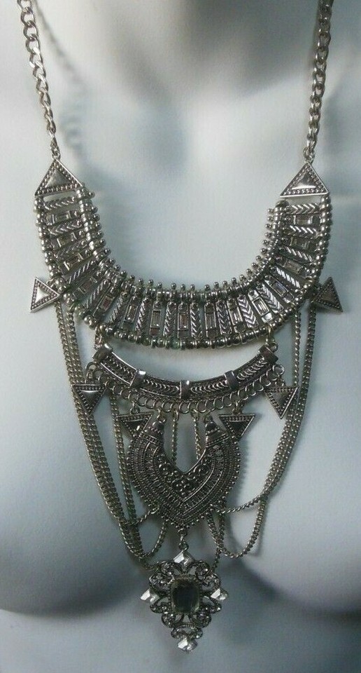Vintage Egyptian Style Silver-tone Rhinestone, Baguettes Statement Necklace