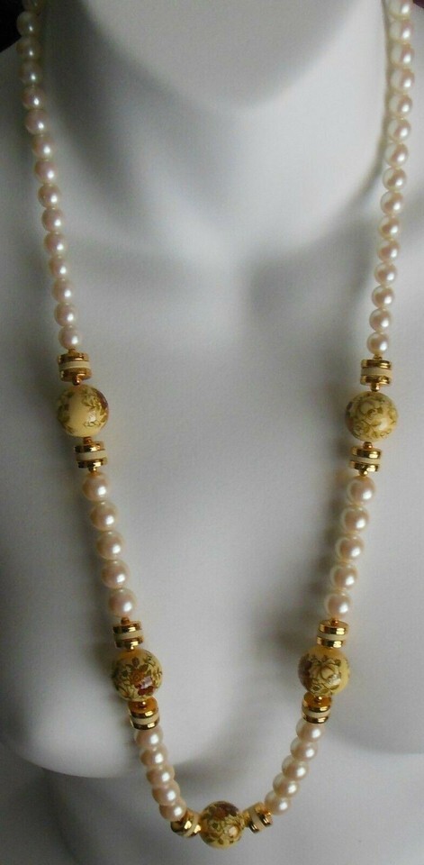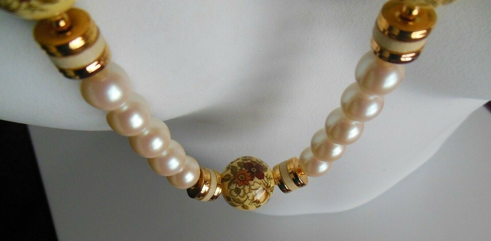 Japan Signed Faux Pearl Necklace W/Painted and 50 similar items