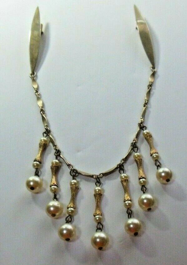 Vintage Signed LADY ELLEN Gold-tone Faux Pearl dangle Hair Clips RARE