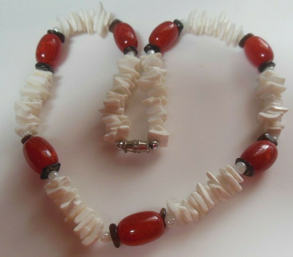 White Puka Chip & Red Glass Jelly Bean and similar items