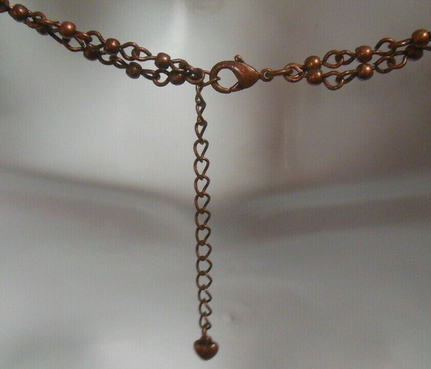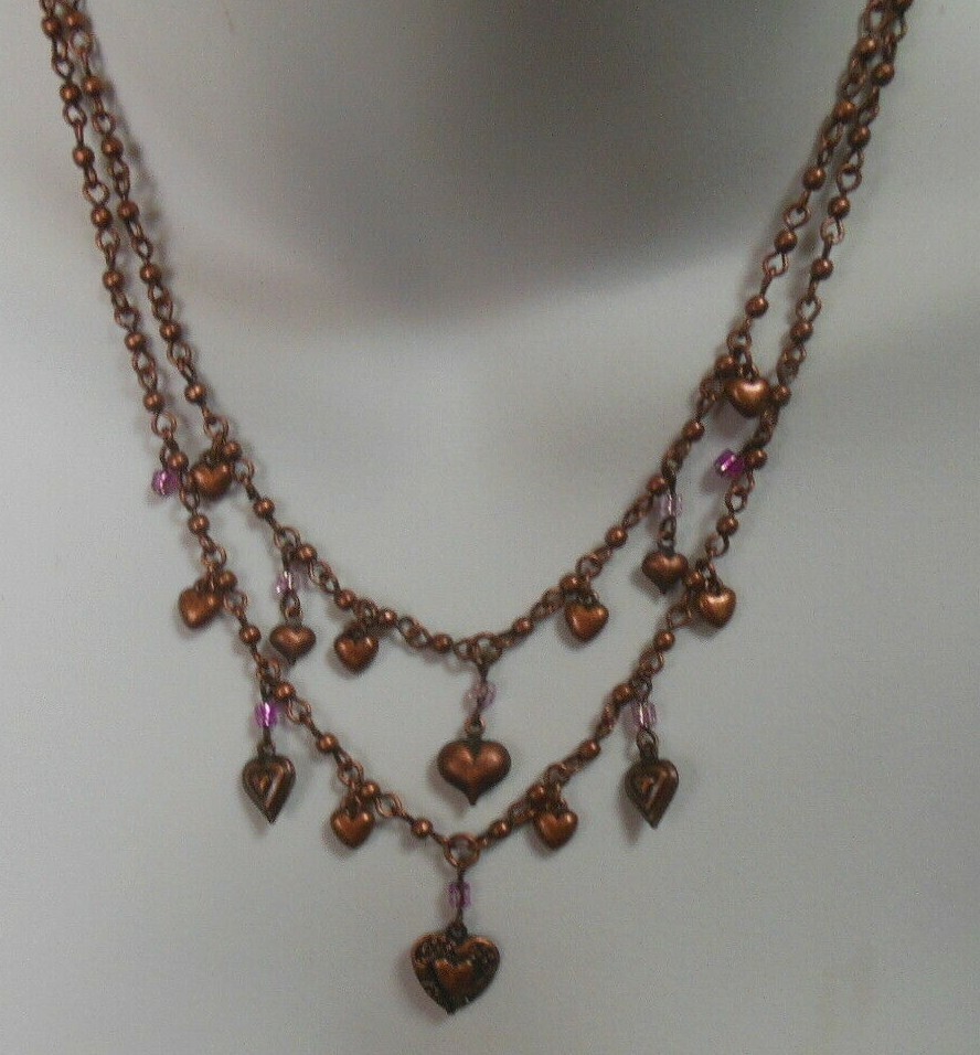 Double Strand Hollow Bronze Heart Charm Necklace 20"