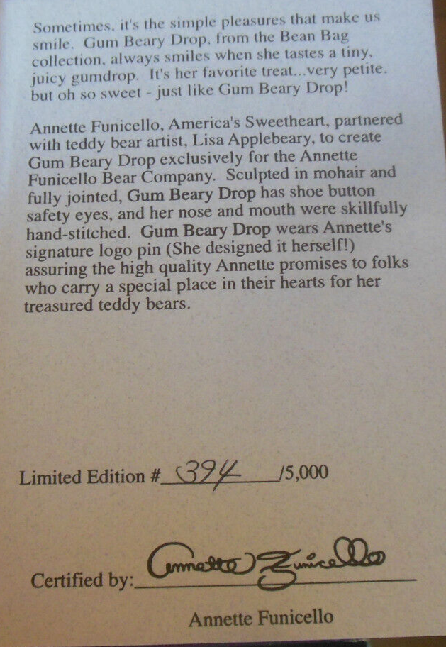 Annette Funicello Collectible Bear Gum Beary and 25 similar items