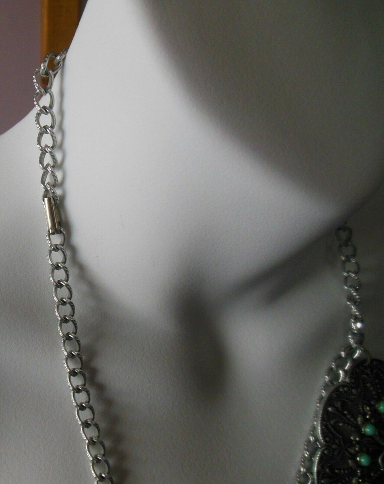 Large Silver-tone Faux Turquoise Medallion and similar items