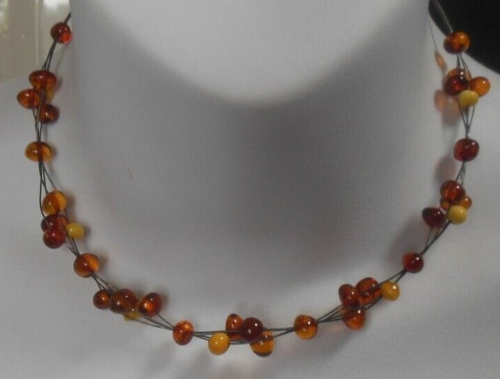 Vintage 925 Sterling Silver Amber Glass Bead Wire Choker Necklace
