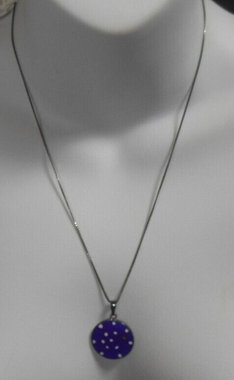 925 Sterling Silver Enamel Stars/Moon Pendant Necklace Box Chain Italy