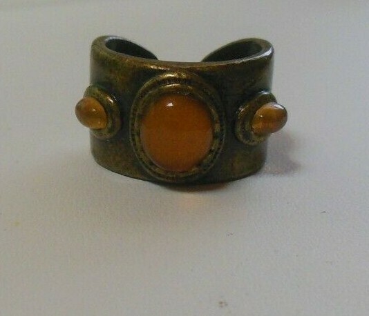 Vintage Signed N A Brass Orange Cabochon Ring Size 8