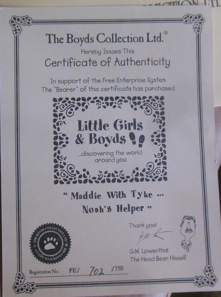 Boyds Little Girls & Boyds Doll "Maddie With Tyke..Noah's Helper" Rare