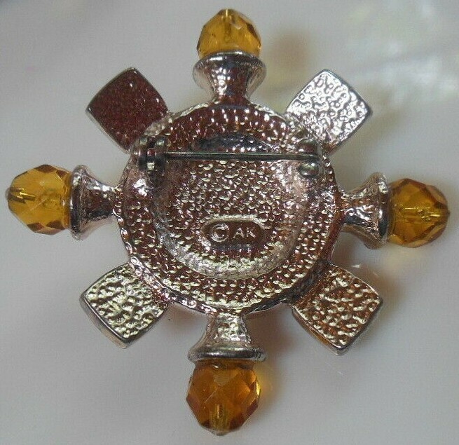 Vintage Signed AK "Anne Klein" Gold-tone Amber-tone Brooch