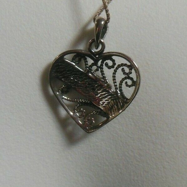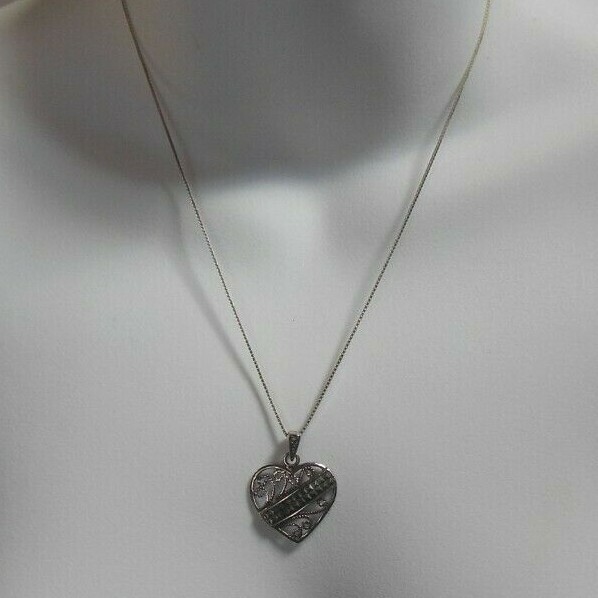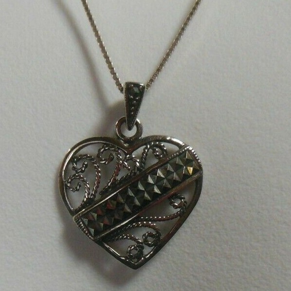 Stamped 925 Italy SU Sterling Silver Marcasite Filigree Heart Pendant Necklace