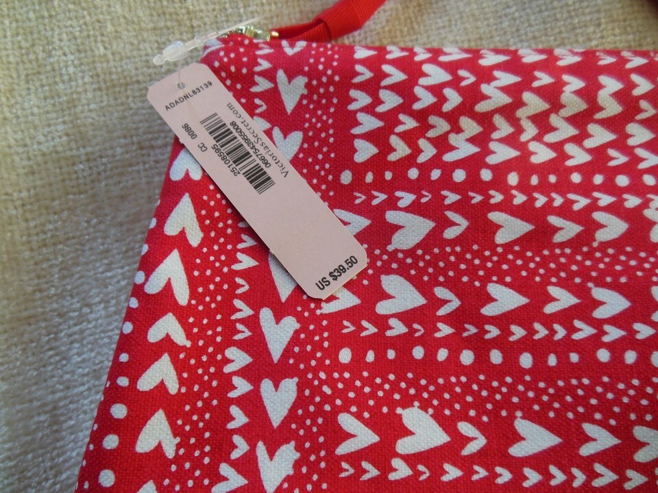 Victoria's Secret Red W/White Hearts Zippered Makeup Pouch/Bag-Gifts Included