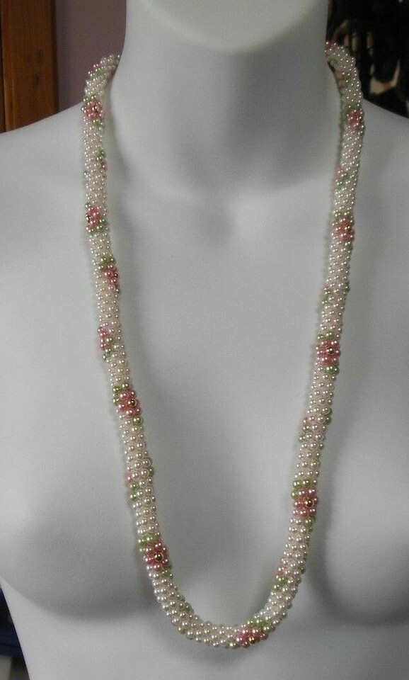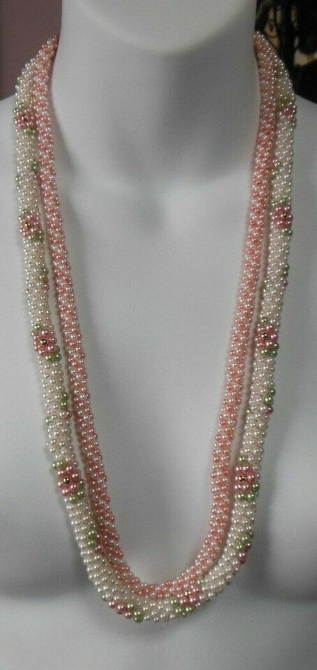 Vintage Germany Long Twisted Small Faux Pearl Necklaces