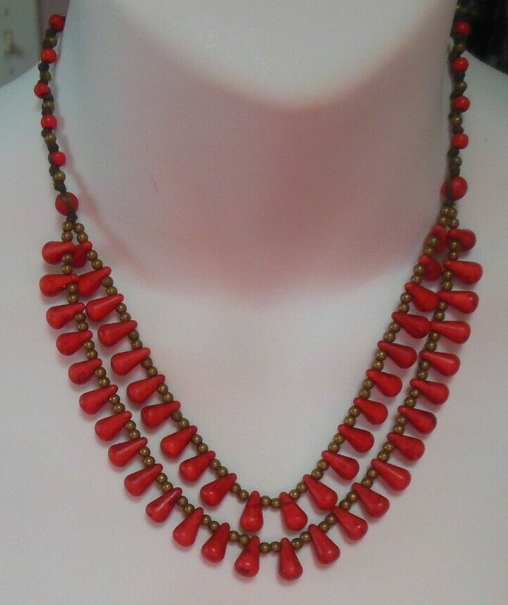 Vintage Hand-knotted Red Bead Necklace and 50 similar items