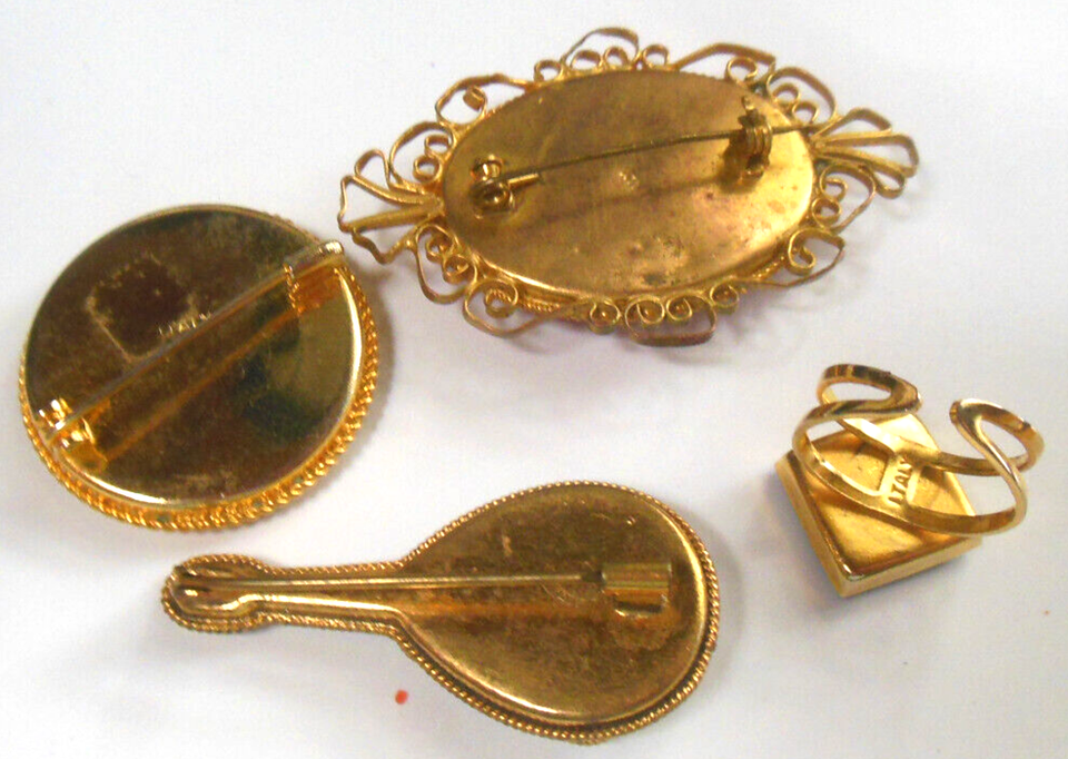 Vintage Mosaic Brooch Ring Lot of 4 All Signed Italy