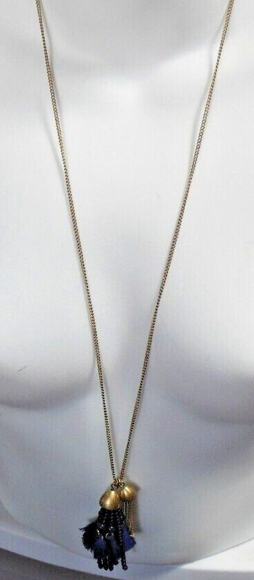Vintage J Crew Long Blue Bead Tassel Pendant Chain Necklace 33" W/J Crew Pouch