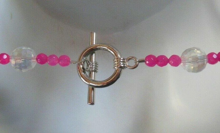 Vintage Pink/Green Glass/Plastic/Metal Bead Toggle Necklace