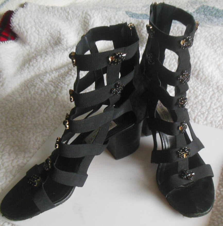 Jimmy Choo Black Suede Embellished strappy heels 41