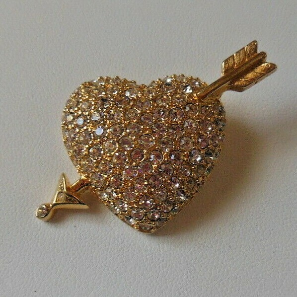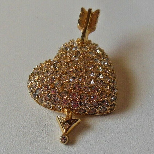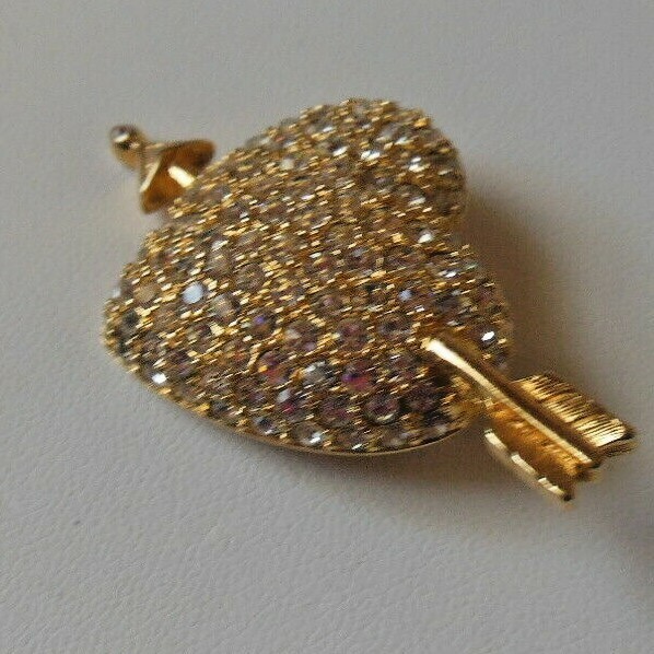 Vintage SWAROVSKI Swan Logo Gold-tone Pave Crystal Heart/Arrow Brooch