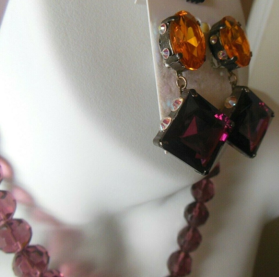 Vintage Heavy Silver-tone Purple Multi-Faceted Glass Necklace Earrings