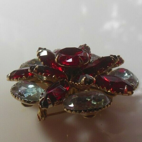 Vintage Gold-tone Red Marquise Rhinestone Light Purple Oval Rhinestone Brooch